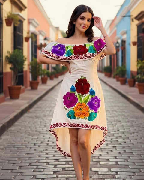 "The Ariana dress features intricate floral embroidery done with delicate cotton thread, adding a touch of elegance and freshness to your look. With its stylish design, this dress is perfect for any occasion. Elevate your wardrobe with the Ariana dress."