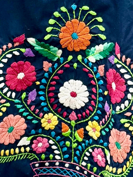 New, handmade midi dress, floral embroidery made by hand 100% by native artisans from Puebla, Mexico.