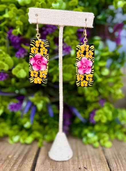 Adorable hand painted wooden earrings featuring a modern vertical rectangle shape with its colorful floral design makes them a beautiful addition to pair with your Mexican attire or to add a touch of culture to your everyday wardrobe.