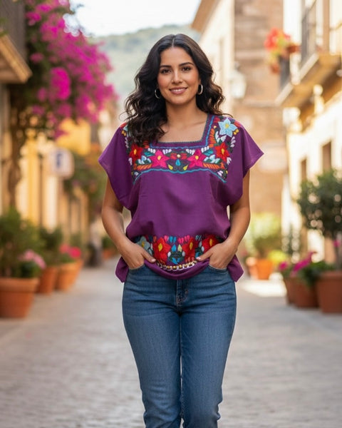 Gorgeous floral embroidered blouse, flattering cut, short sleeves.
