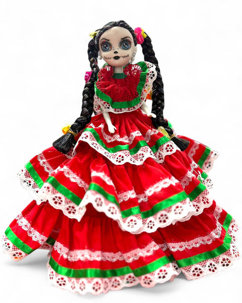 This beautiful Catrina doll is a colorful and festive representation of one of the most iconic figures of the Mexican Día de Muertos (Day of the Dead) celebration.