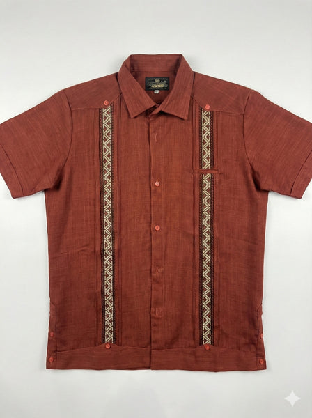 Get ready to stand out in this Men's Linen Guayabera! This short sleeve guayabera features an embroidered pattern, adding a touch of Mexican culture to your wardrobe. Made with lightweight linen, this guayabera is perfect for those warm weather days. Upgrade your style game today!