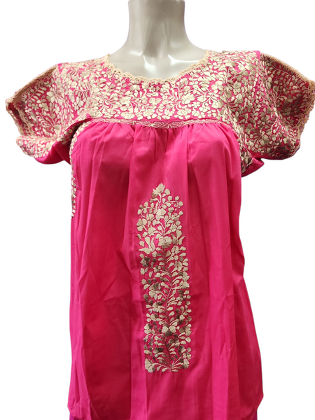 San Antonino Mexican Gala Blouse with Silk Embroidery Hot Pink