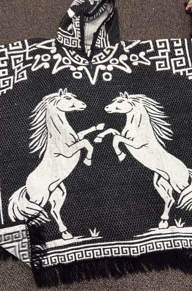 Unisex Mexican Poncho Horses Black